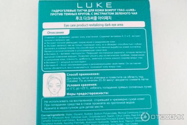 Отзывы о Гидрогелевые патчи для кожи вокруг глаз LUKE от темных кругов