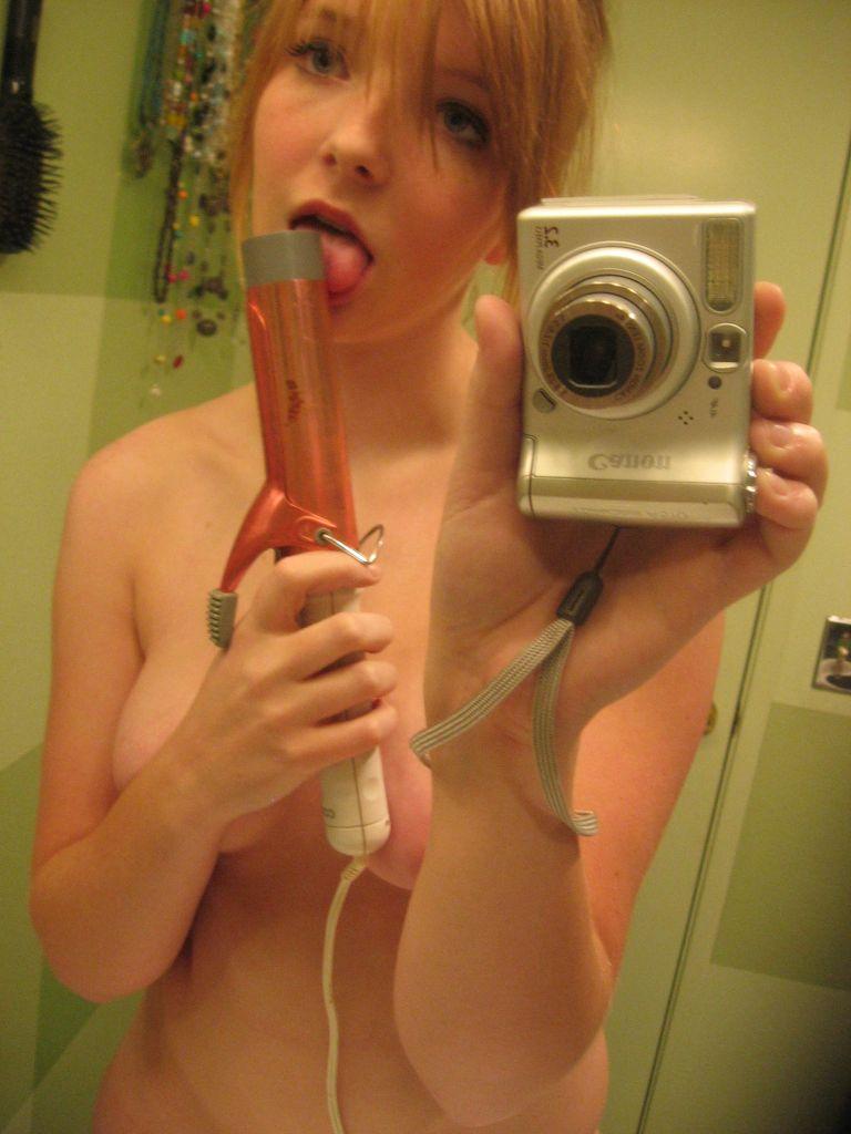 Teen fucks herself with curling iron