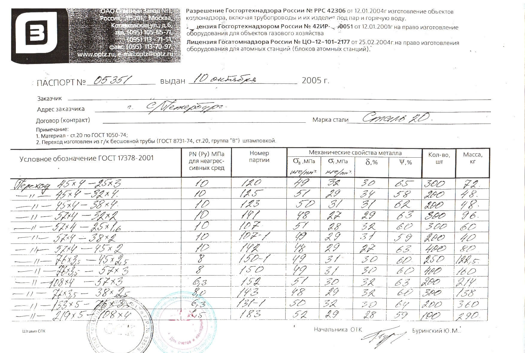 Гильза стальная сертификат