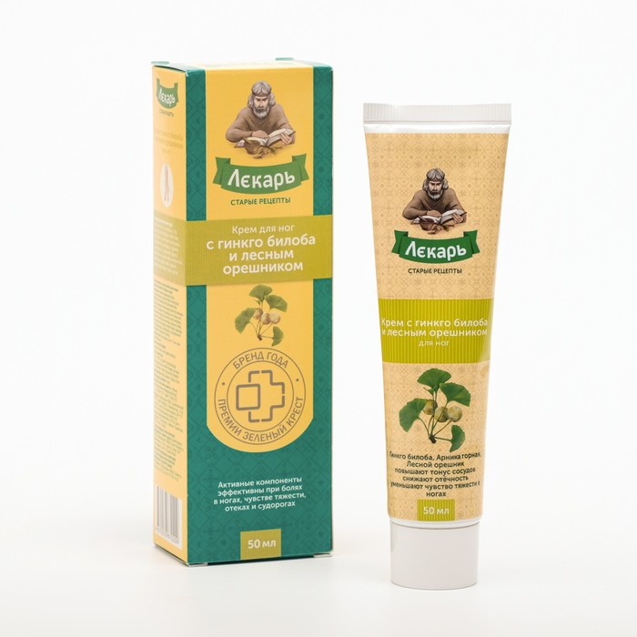 Крем для ног "Лекарь с гинко билоба и орешником" купила в аптеке за 104 рубля - 50 мл . Бывает, что концу дня ноги начинают ныть, появляется небольшая тяжесть . Растение гинко билоба уменьшает боль . . .