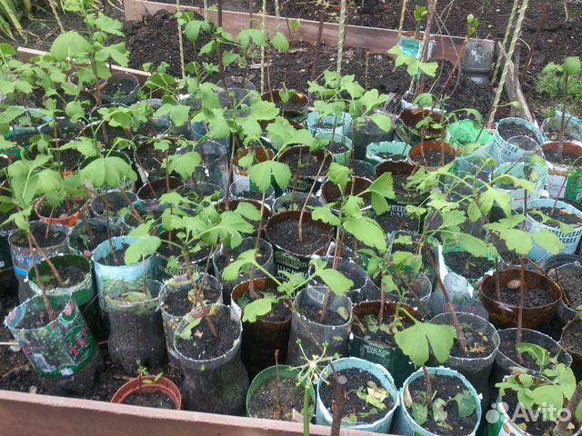 Гинкго двулопастный (Ginkgo biloba L .) - растёт быстро, развивает мощную корневую систему, морозостойкость до -30 С . Слева - однолетние саженцы, справа - двухлетние .