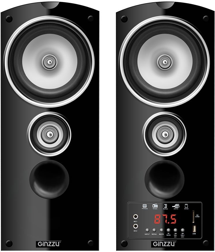Описание Колонки 2 .0 Ginzzu GM-328 . Домашняя аудиосистема Ginzzu GM-328 - это две напольные колонки с черными МДФ-корпусами, обладающими размерами 29x113x21 см . Оборудование оснащено дисплеем, регуляторами тембра ВЧ, громкости эха и микрофона, семью предустановками эквалайзера, FM-радио . . .