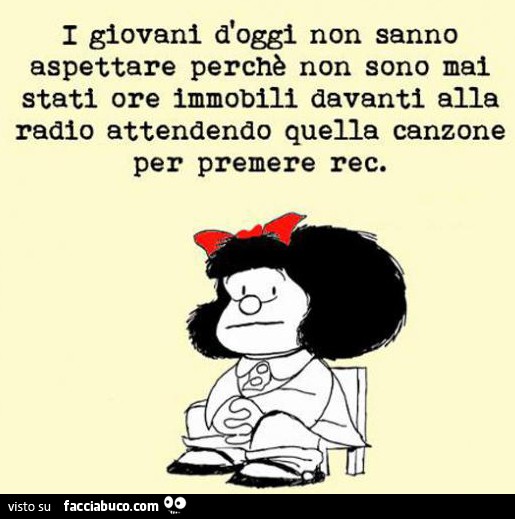 I giovani d'oggi non hanno preso i ceffoni e non hanno rispetto per chi li educa e ancora ha nel petto le cicatrici e nel sedere i calcioni . Sono mammoni e stanno tanto a casa di chi da casa è fuggito . I giovani d'oggi non hanno speranza, ma solo una stanza con manifesti di cantanti e rivoluzionari agli arresti .
