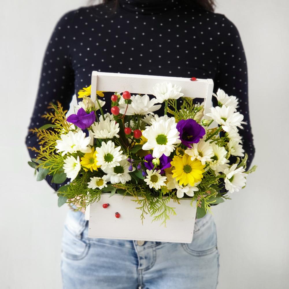 Герберы, хризантемы, гиперикум и лимониум в корзине купить в интернет-магазине Цветы Тут с доставкой за 90 минут! В каталоге более 15996 позиций