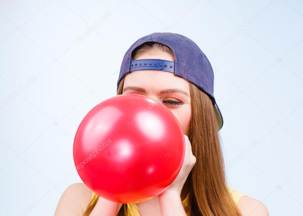 Girl Blowing Balloon