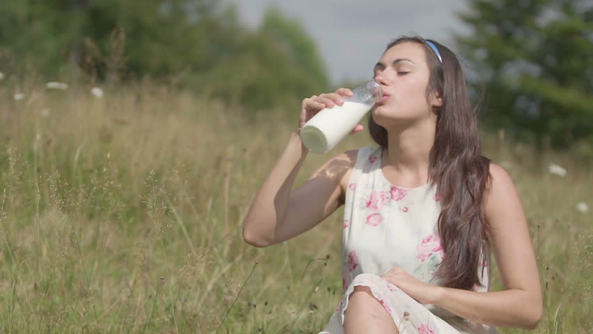 Girl Pouring Milk On Herself