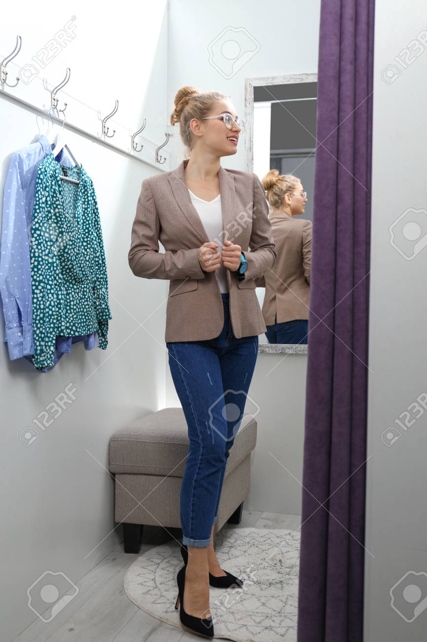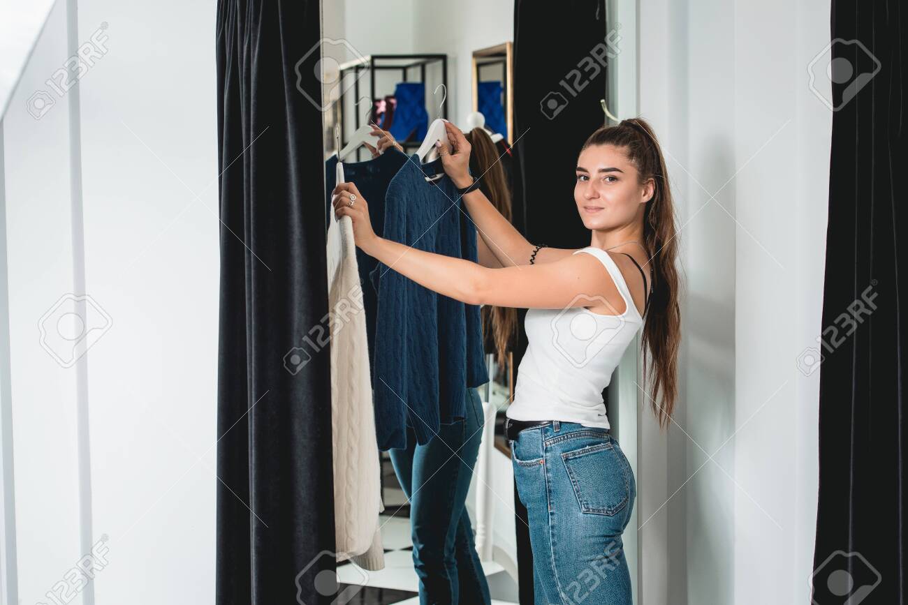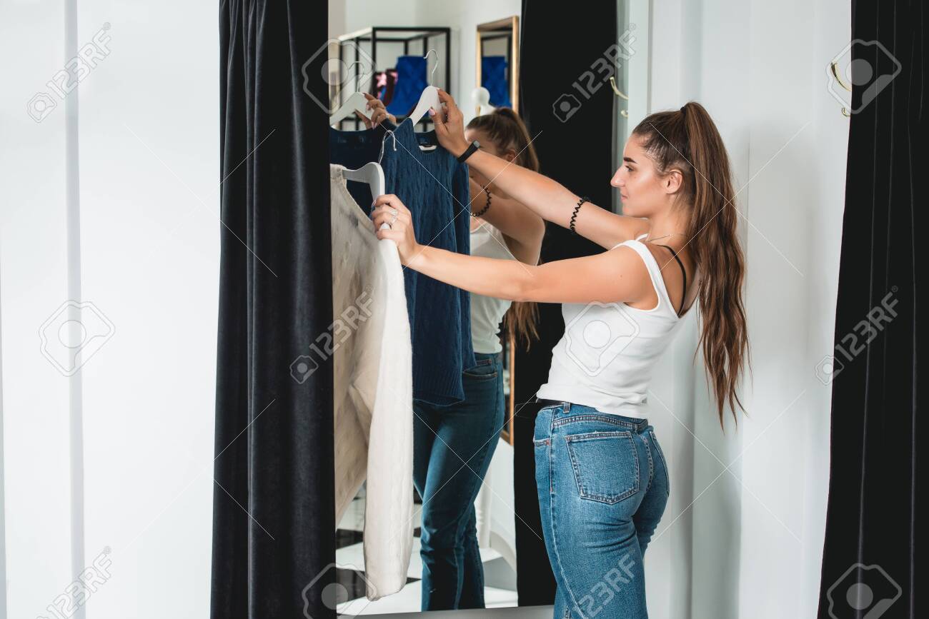 Girl changing clothes fitting room