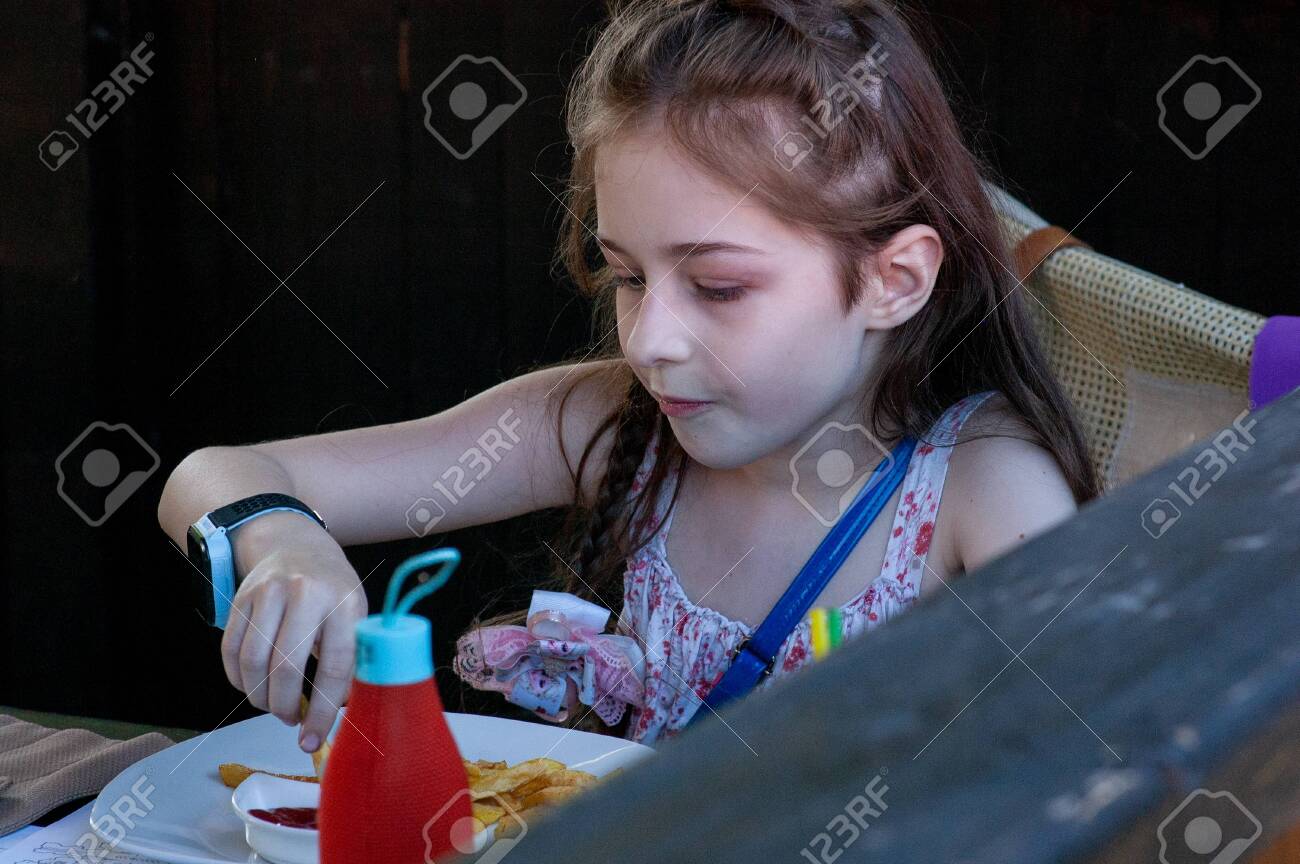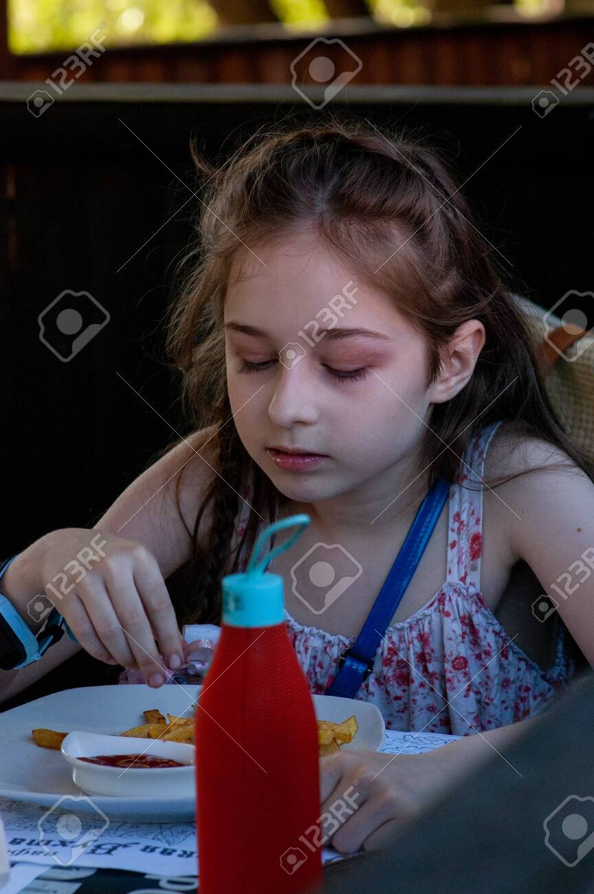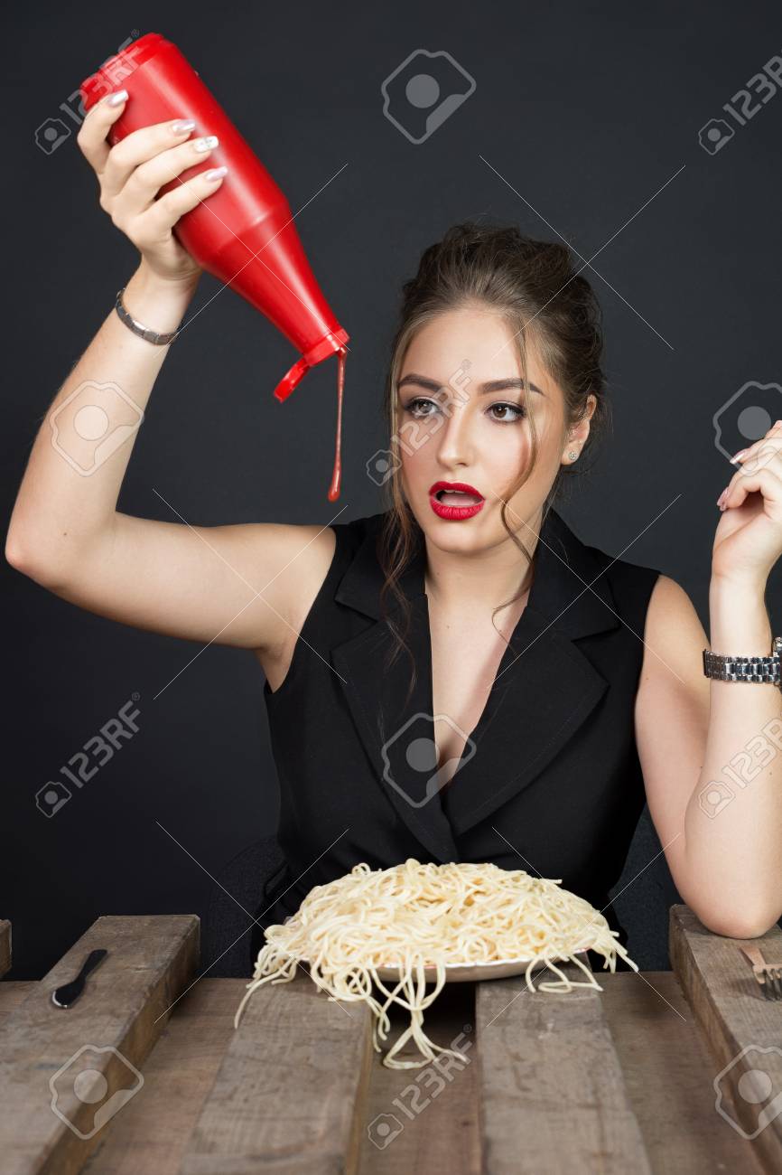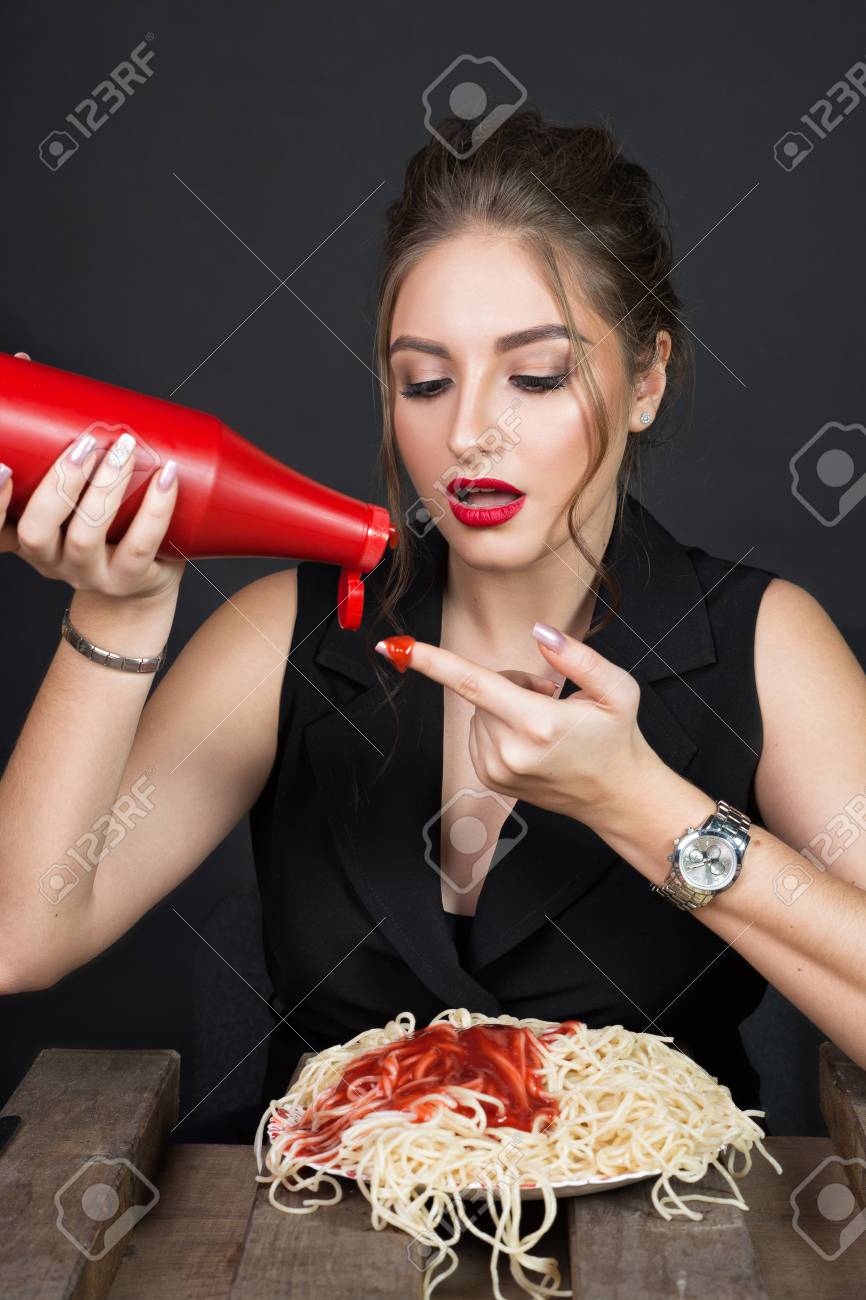 Girl eats sauce from bottle