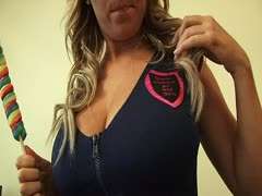 Traumhafte blonde Milf zieht blank und wichst