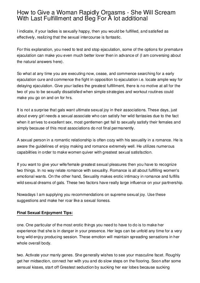 Well, clearly, different women experience the female orgasm in different ways . And of course, there's no surefire way to make a woman orgasm . But don't worry-the good news is, we can use this information for your (and her) benefit . Here are 5 actual ways to make her orgasm way more likely during sex: 1) Don't Skip Foreplay