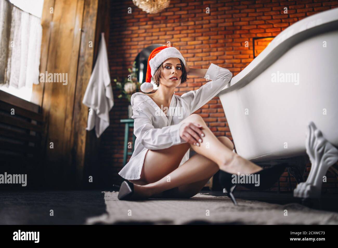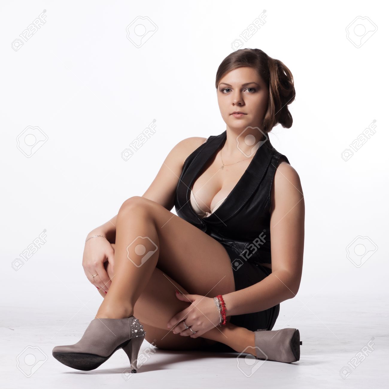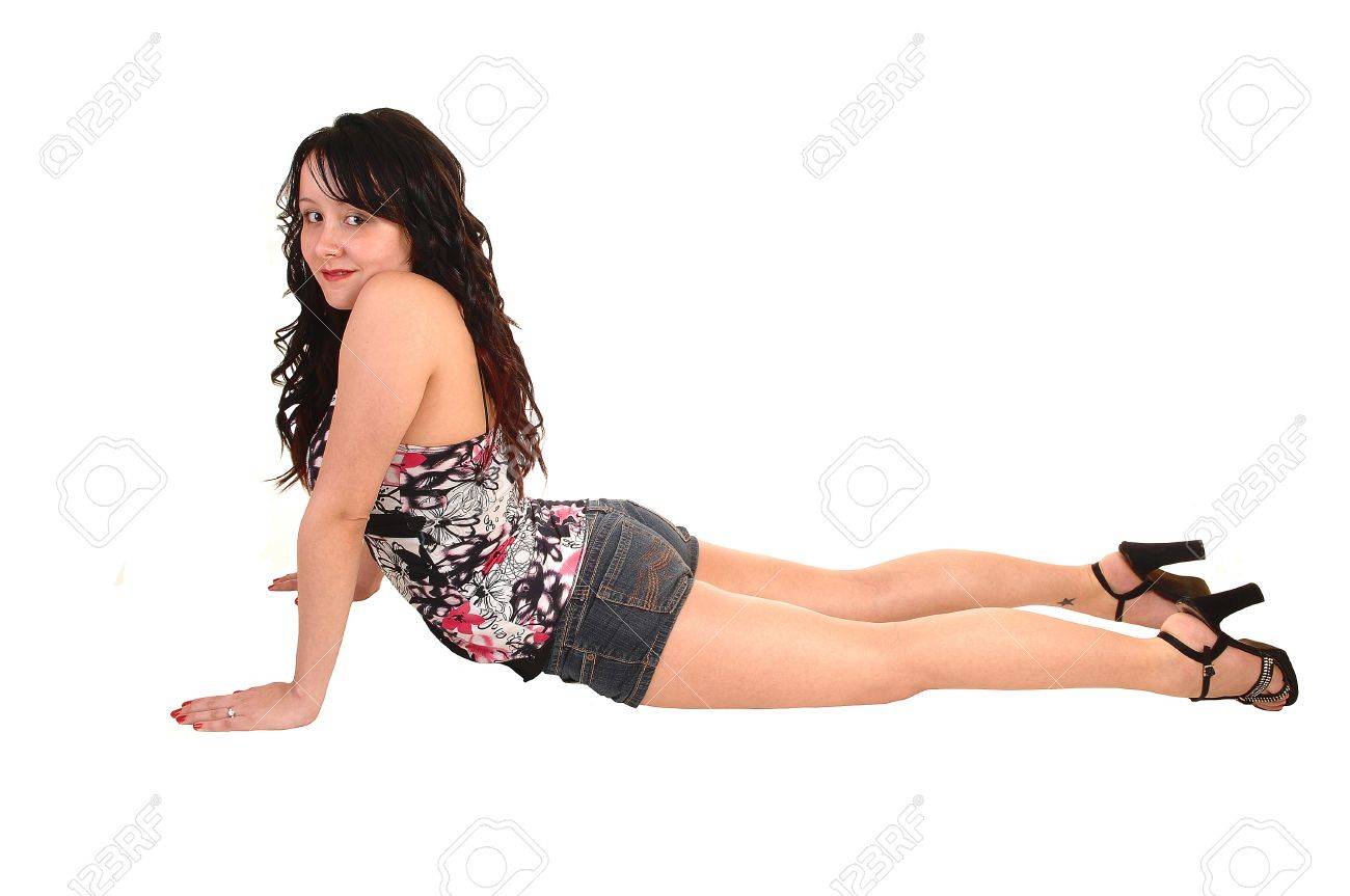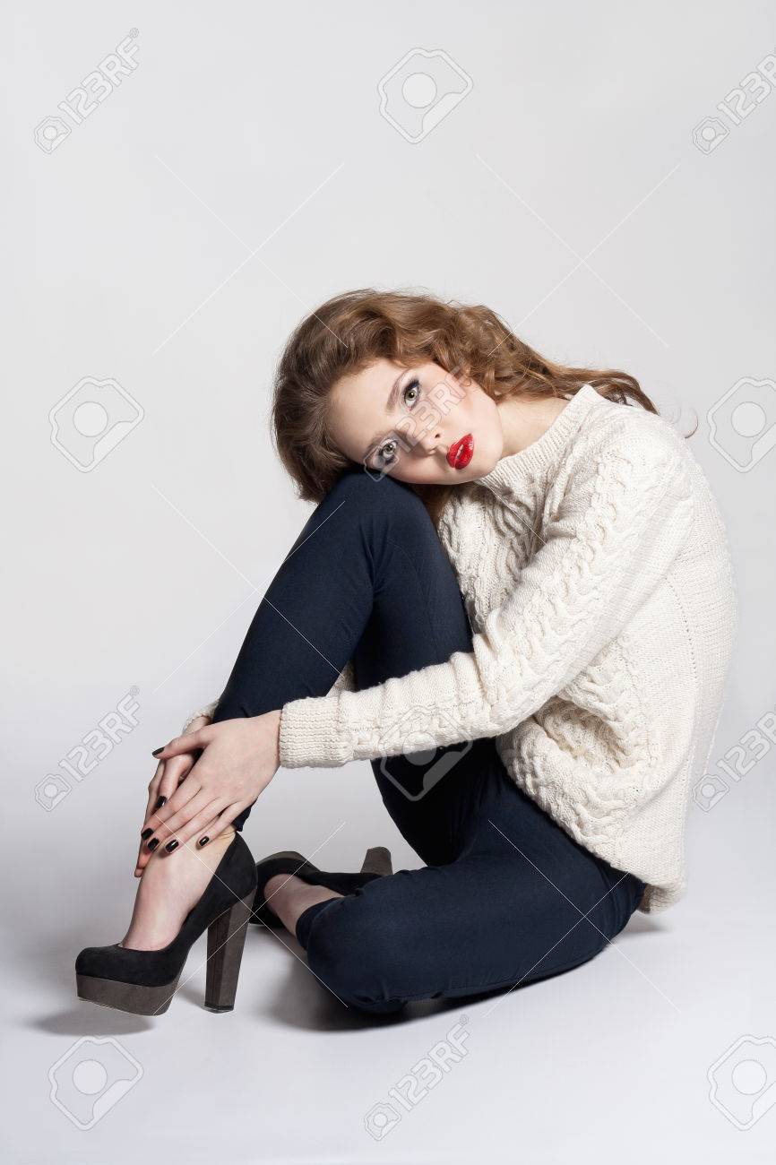 Girl posing on froor high heels