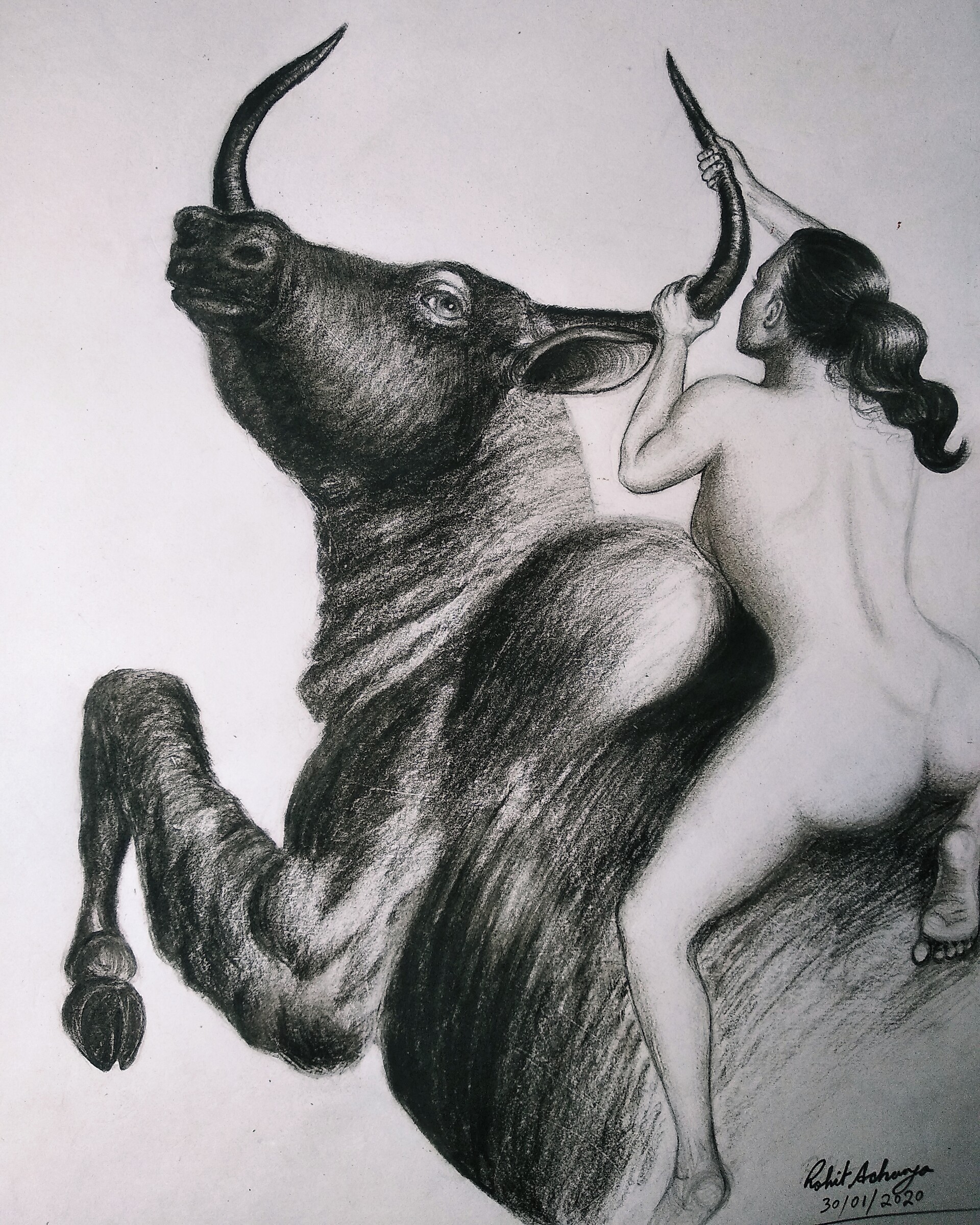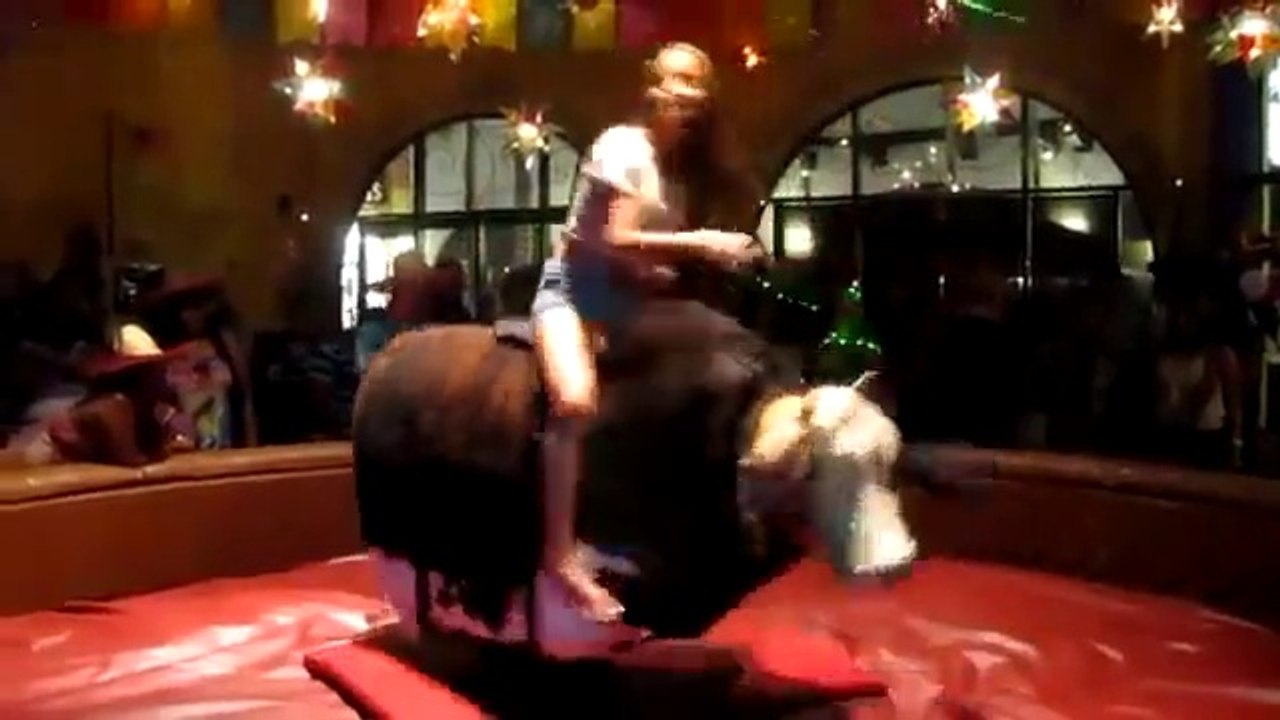 Girl rides bull