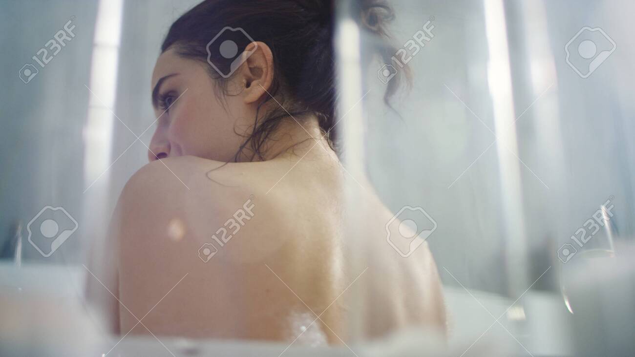 woman taking a shower in slow motion . young girl under . . .
