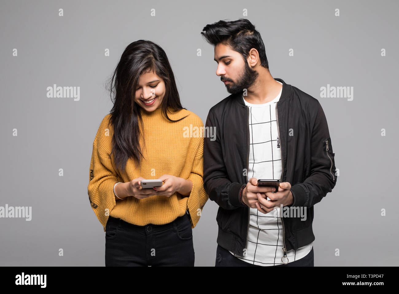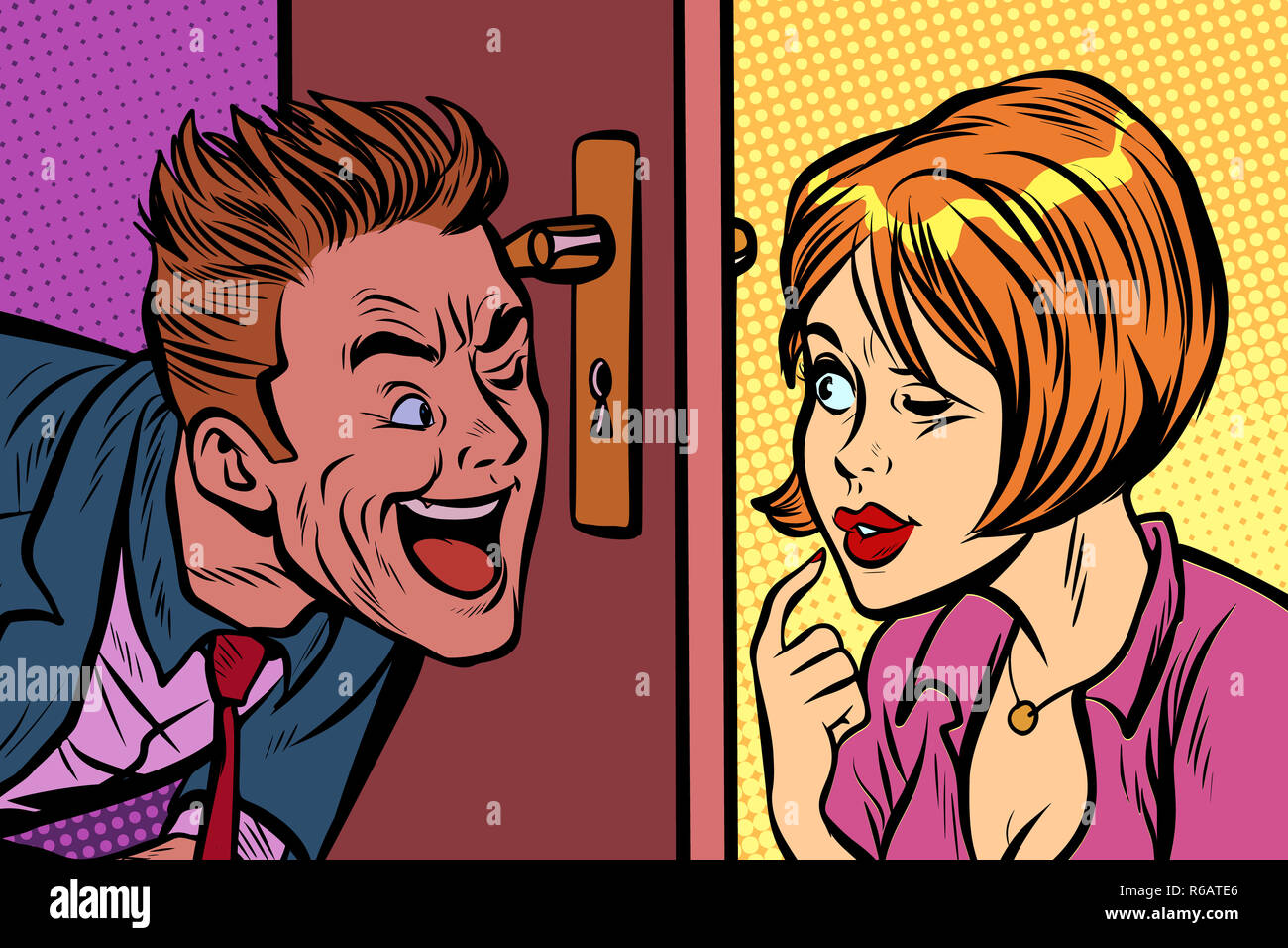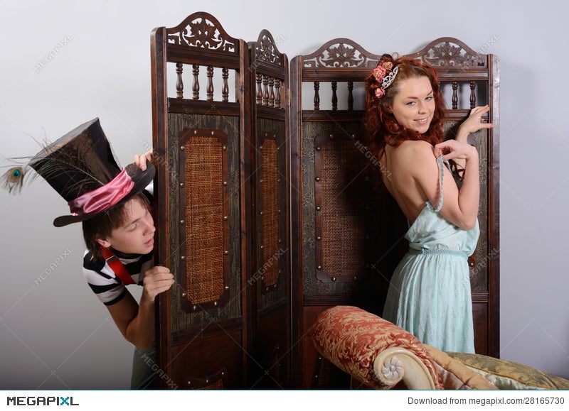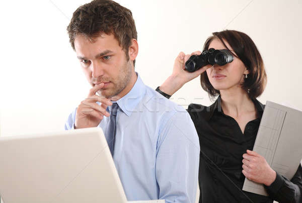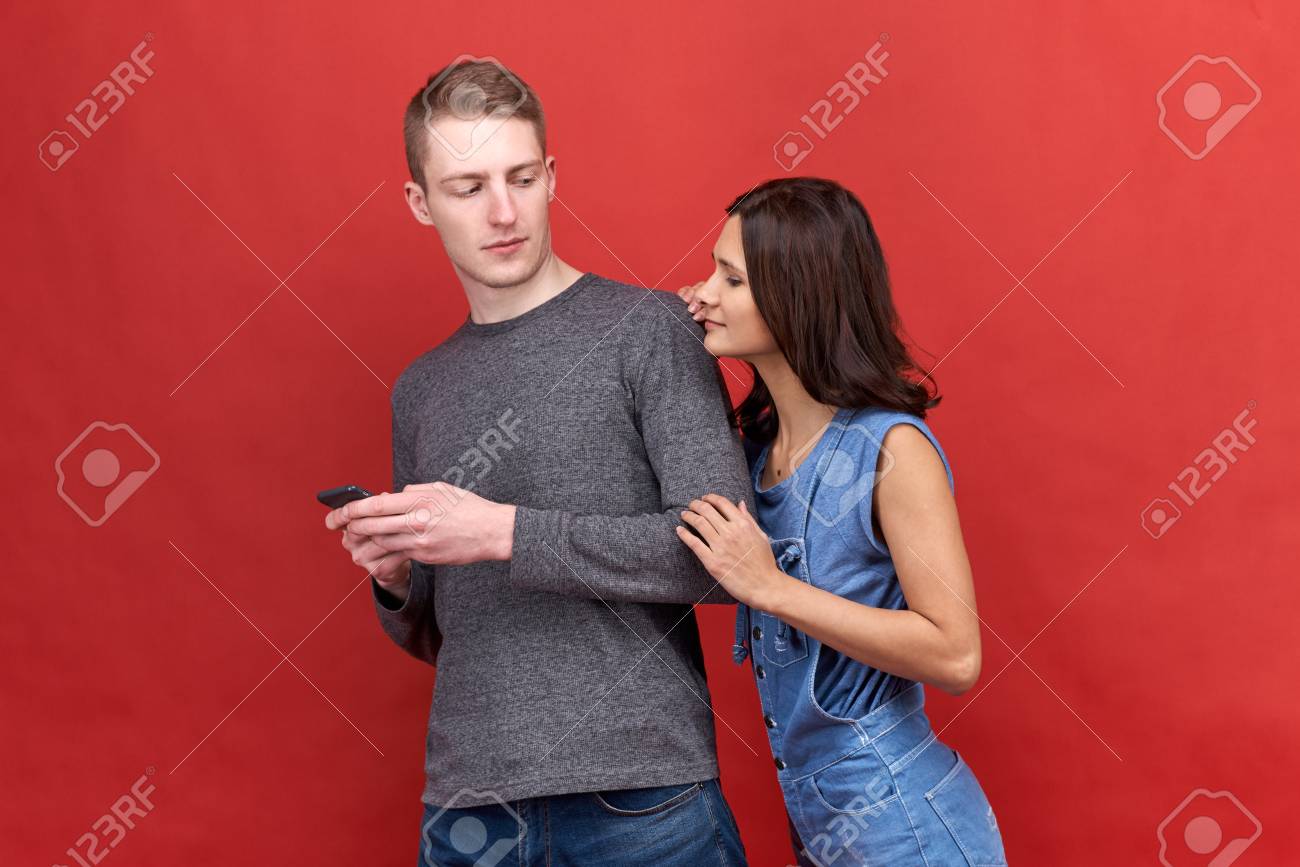 Girl spying man