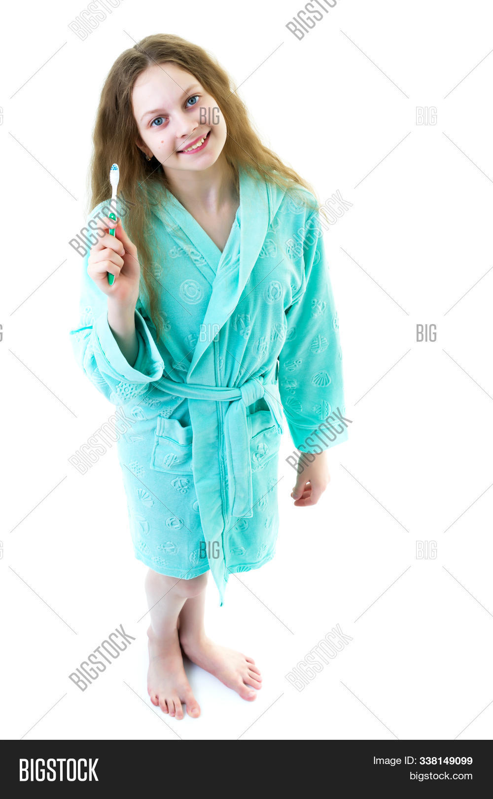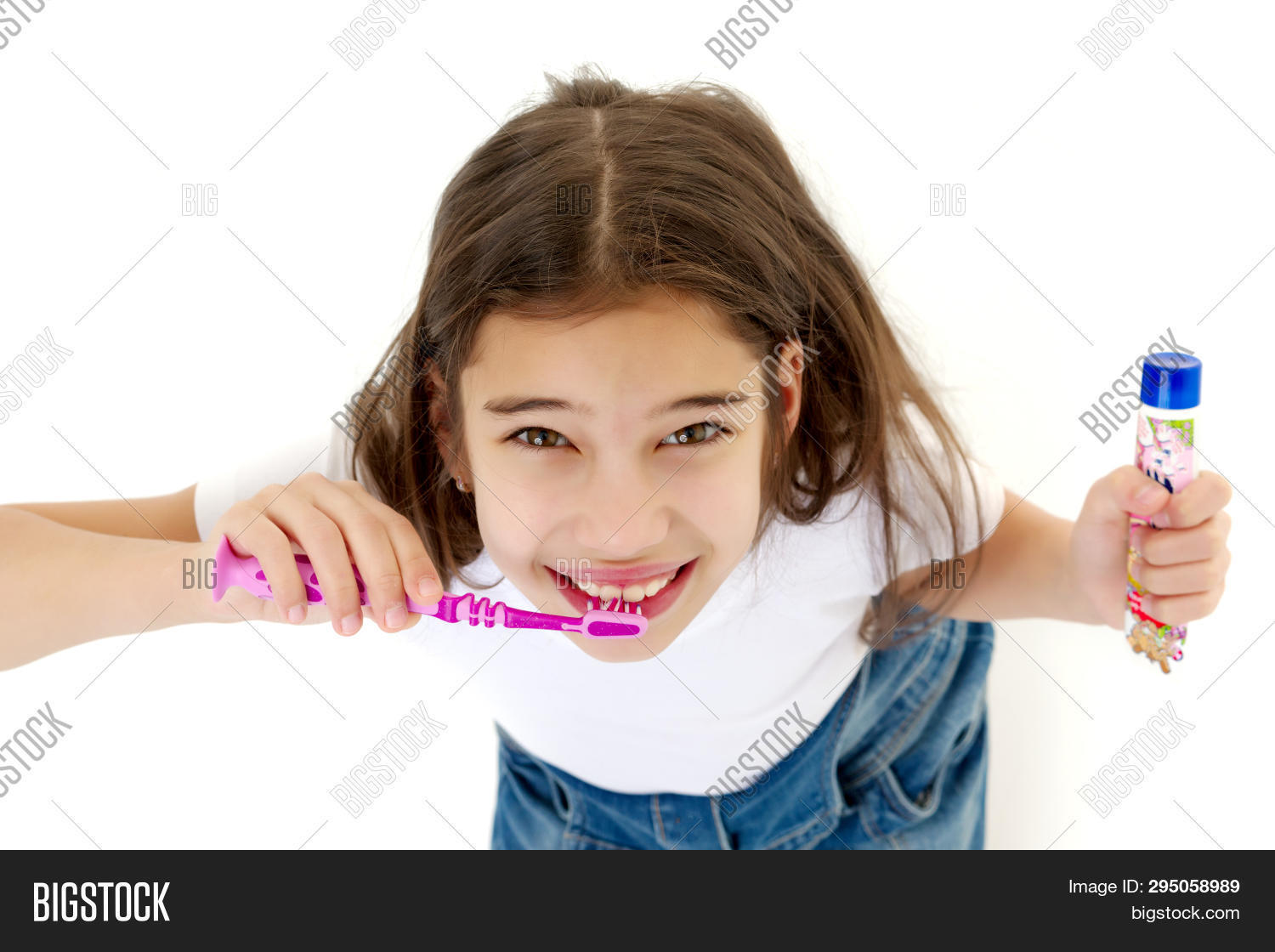 Girl uses toothbrush