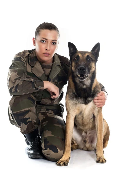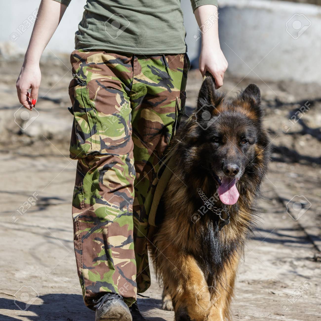 Girls Army And German Shepherd