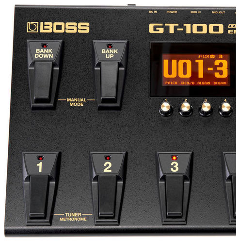 Гитарный процессор boss gt-100 я использую уже полтора года . За это время он зарекомендовал себя как очень удобный, простой в использовании, гибкий в на стройках процессор .