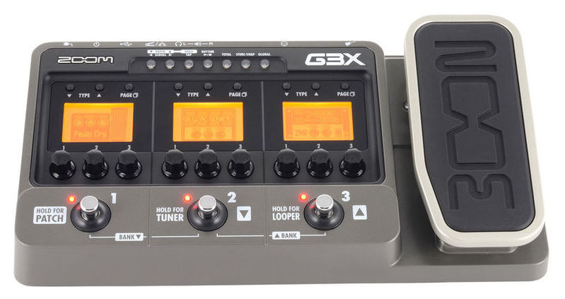 Гитарный процессор Zoom G3X имеет 94 типа настроек разнообразных педалей из числа самых популярных гитарных примочек . Возможно использование до трех эффектов в любой комбинации .