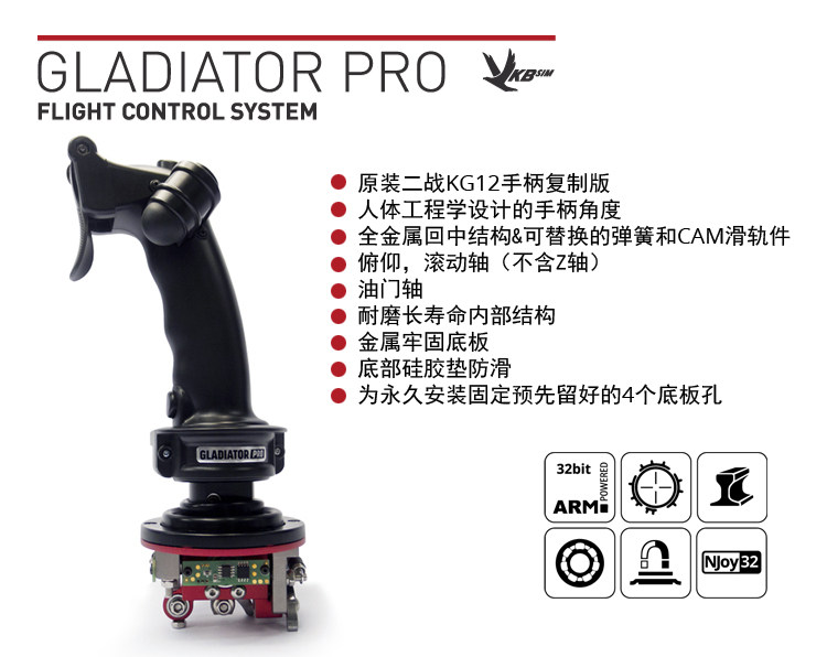 Джойстик Gladiator Pro MkII — это новый, захватывающий дизайн от инженеров ВКБ . Ручка джойстика является близкой адаптированной копией знаменитого РУС KG12, который использовался во многих самолетах Второй Мировой войны .
