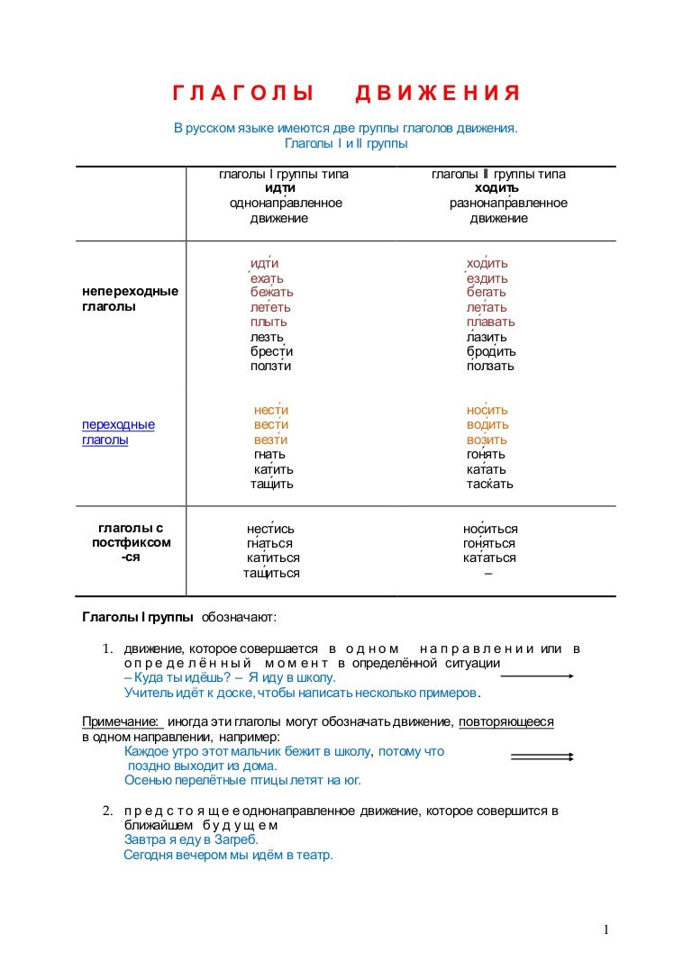 Глаголы движения пример