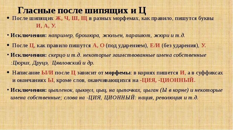 Суффиксы после шипящих о е правило