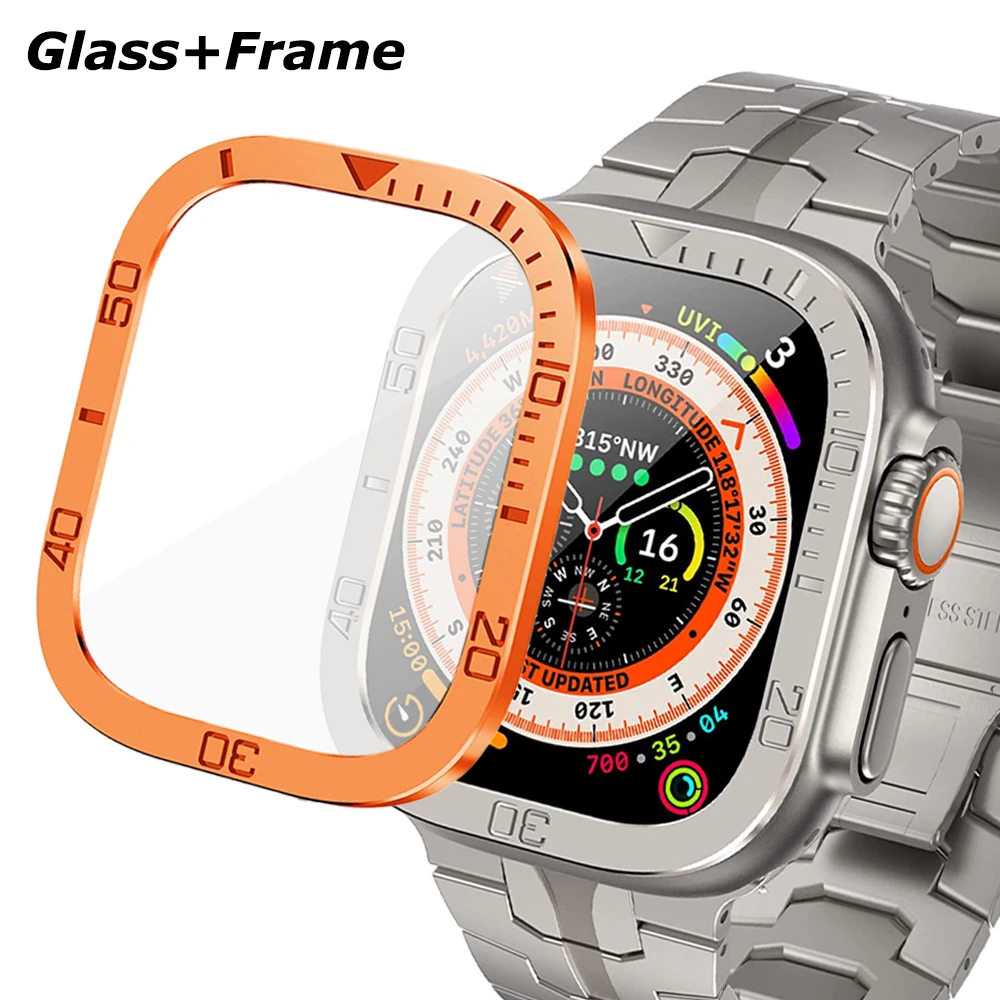 "Glass Frame+Stainless Steel Band For Apple Watch Ultra 49mm Tempered Screen Protector Metal Cover Bezel Case For iWatch 49 Strap" * Buy Now With Free Shipping Just For $17
