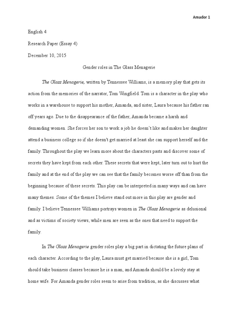 Glass Menagerie Essay | Bartleby