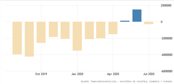 ⬛Дефицит торгового баланса Испании резко сократился до 0,31 млрд евро в июле 2020 года. Экспорт упал на 7,5 процента, так как продажи в основном снизились на энергоносители (-49,7 процента), капитальные товары (-9,0 процента), промышленные потребительские товары (-12,8 процента), сырье (-25,2 процента) и химикаты (-3,9 процента). Импорт упал более быстрыми темпами на 14,7 процента, поскольку снизились закупки энергоносителей (-41,1 процента), транспортных средств (-22,2 процента), нехимических полуфабрикатов (-23,8 процента), промышленных потребительских товаров (-13,3 процента), химикатов ( -9,2 процента) и продукты питания, напитки и табак (-11,8 процента).