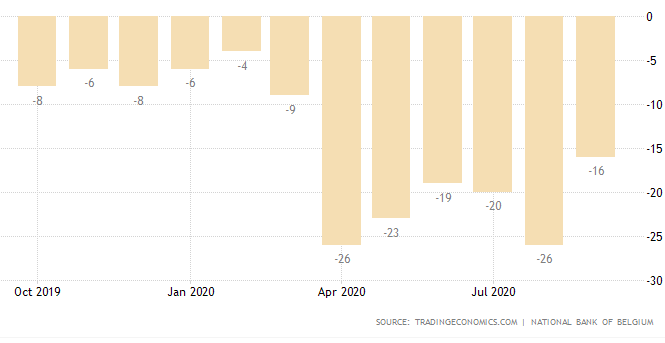 ⬛Индекс потребительского доверия в Бельгии увеличился до -16 в сентябре 2020 года с -26 в предыдущем месяце