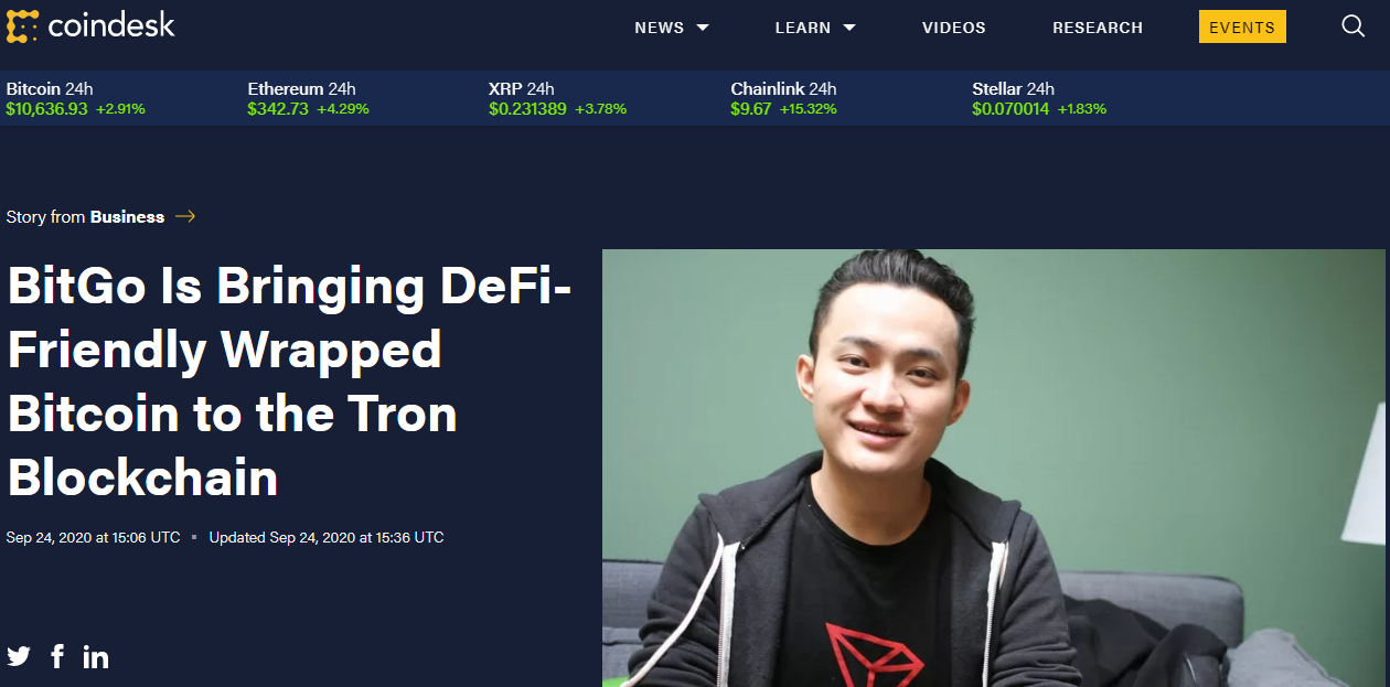 В рамках сотрудничества Wrapped Bitcoin (WBTC) и недавно запущенный Wrapped Ether будут добавлены в экосистему Tron в качестве TRC20-токенов. Они обеспечиваются биткоином и эфиром соответственно в соотношении 1 к 1. За хранение резервов отвечает квалифицированная американская кастодиальная компания BitGo Trust.