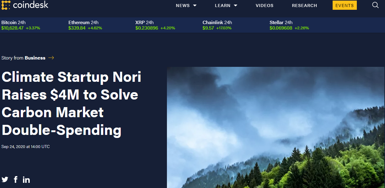 ⚫Стартап по борьбе с изменением климата Nori получил финансирование для создания рынка квот на выбросы углерода, основанного на блокчейне