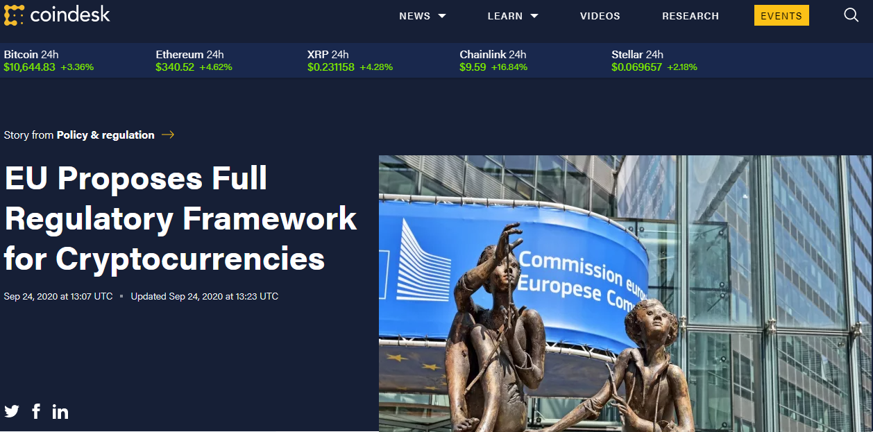 ❗Европейская комиссия в четверг предложила закон , который превратит криптовалюты в регулируемый финансовый инструмент.