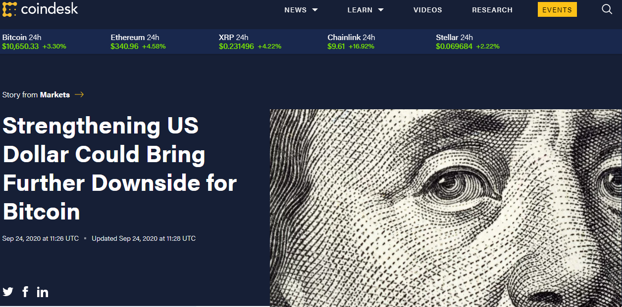 ⚫Аналитики Coindesk считают, что укрепление доллара может обрушить BTC