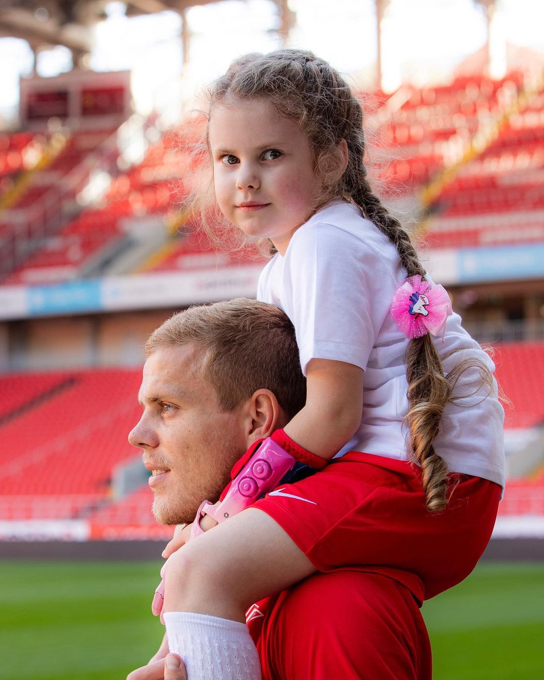 После протезирования 6-летняя девочка встретилась с форвардом красно-белых Александром Кокориным, вместе с которым прогулялась по «Открытие Арене».