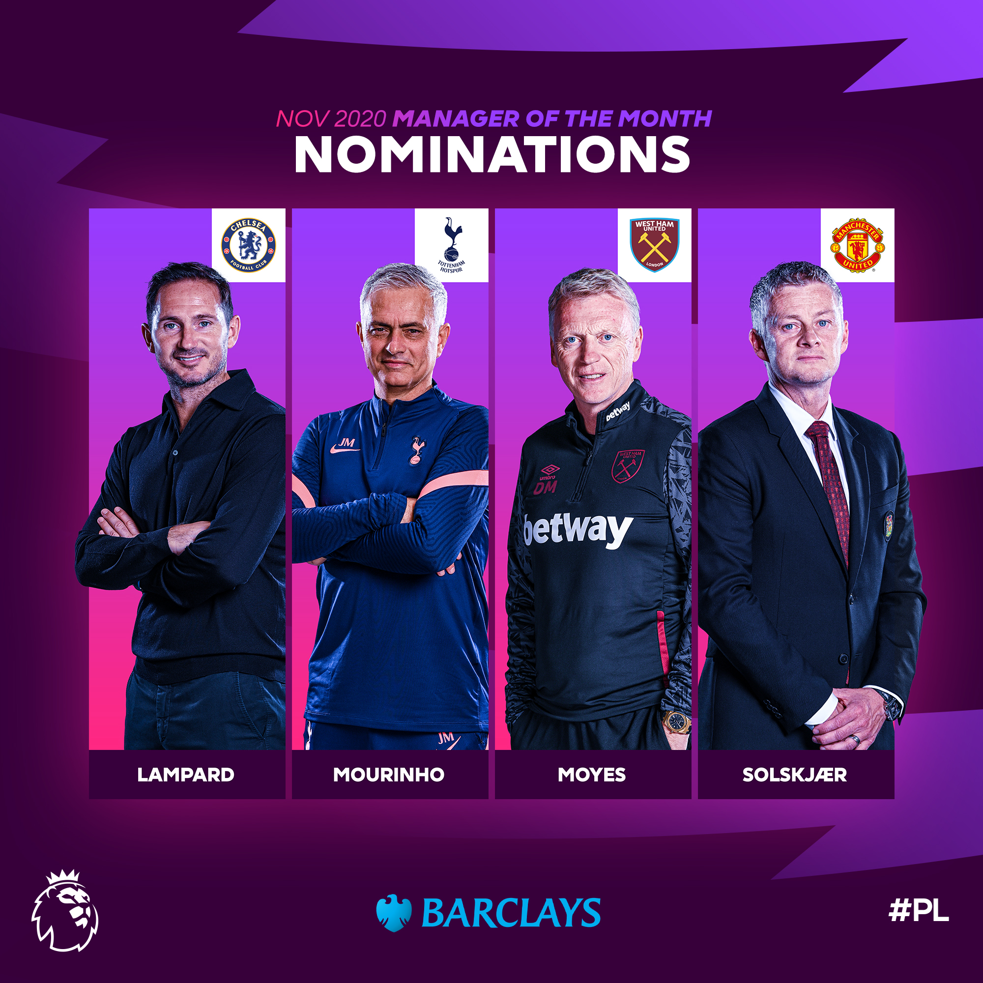 На приз номинированы Фрэнк Лэмпард («Челси», 2 победы и ничья в ноябре), Жозе Моуринью («Тоттенхэм», 3 победы и ничья), Оле-Гуннар Сульшер («Манчестер Юнайтед», 3 победы и поражение) и Дэвид Мойес («Вест Хэм», 3 победы).