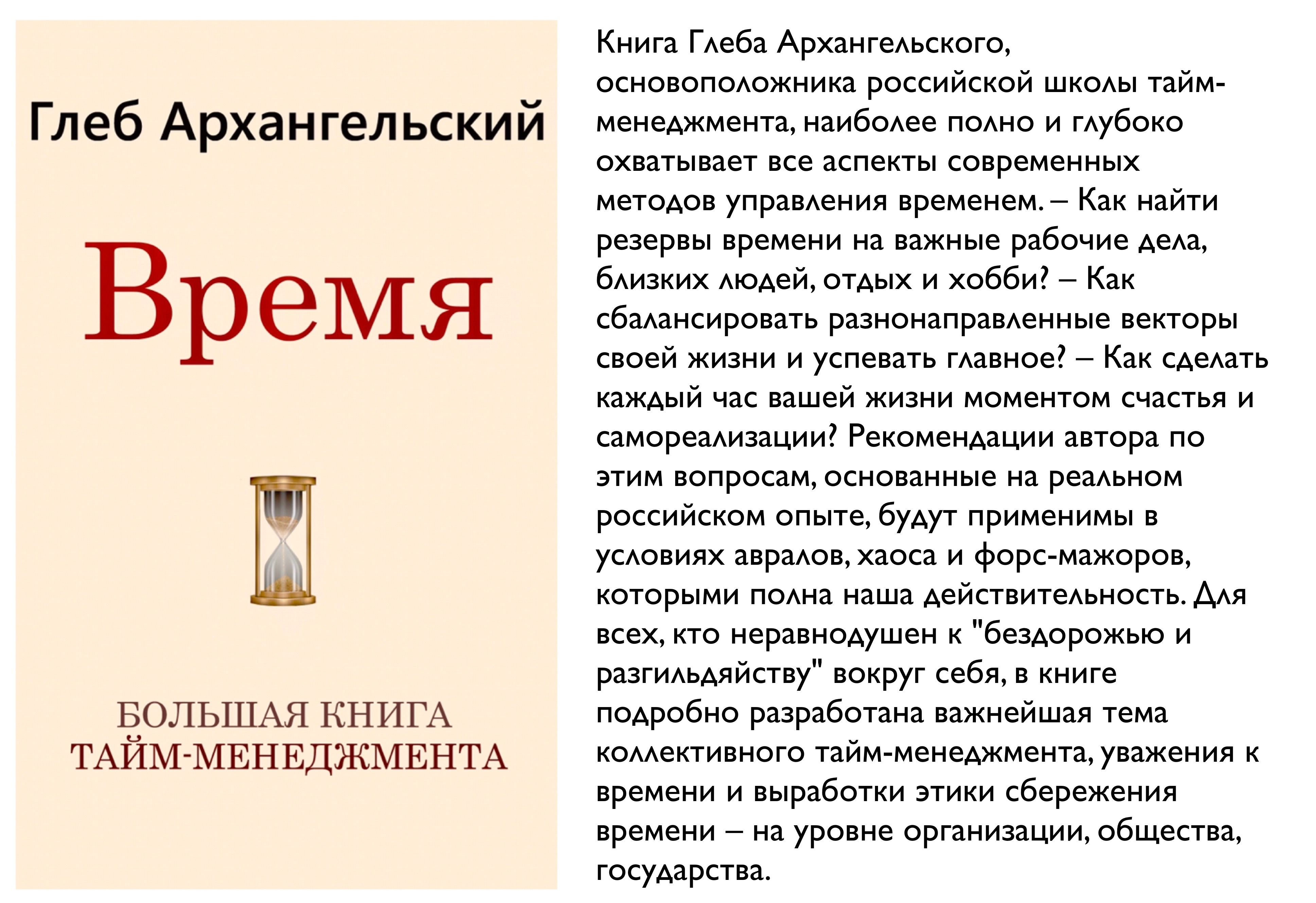 Уже двадцать лет я помогаю людям и организациям в России найти общий язык с временем. Сам удивляюсь, насколько разнообразны аудитории, с которыми я обсуждаю проблему организации времени в связке с особенностями национального характера: топ-менеджеры Администрации Президента РФ и талантливые школьники в образовательном центре «Сириус», члены правления РЖД и студенты Санкт-Петербургской духовной академии, офицеры регионального ГУВД и активисты общероссийской предпринимательской организации «Опора России»…