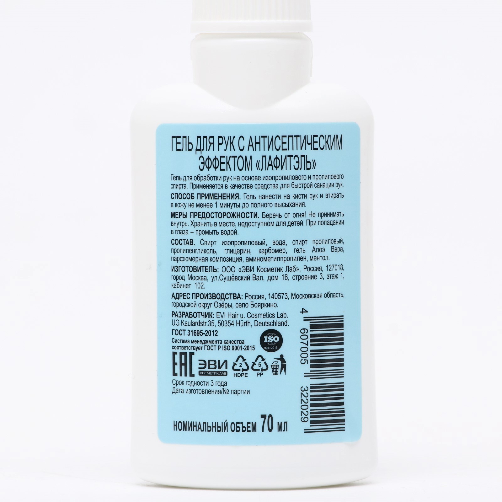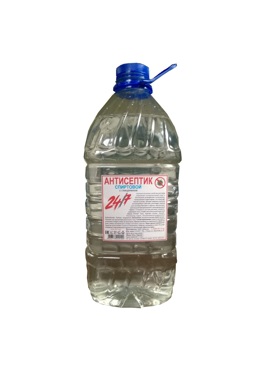 Антисептик содержит глицерин . Благодаря этому, он смягчает, увлажняет и питает кожу . Состав: изопропиловый спирт (70%), вода, глицерин, перекись водорода . Мы 11 лет на рынке Своя производственная база в Санкт-Петербурге . На складе всегда есть готовая к отгрузке продукция .