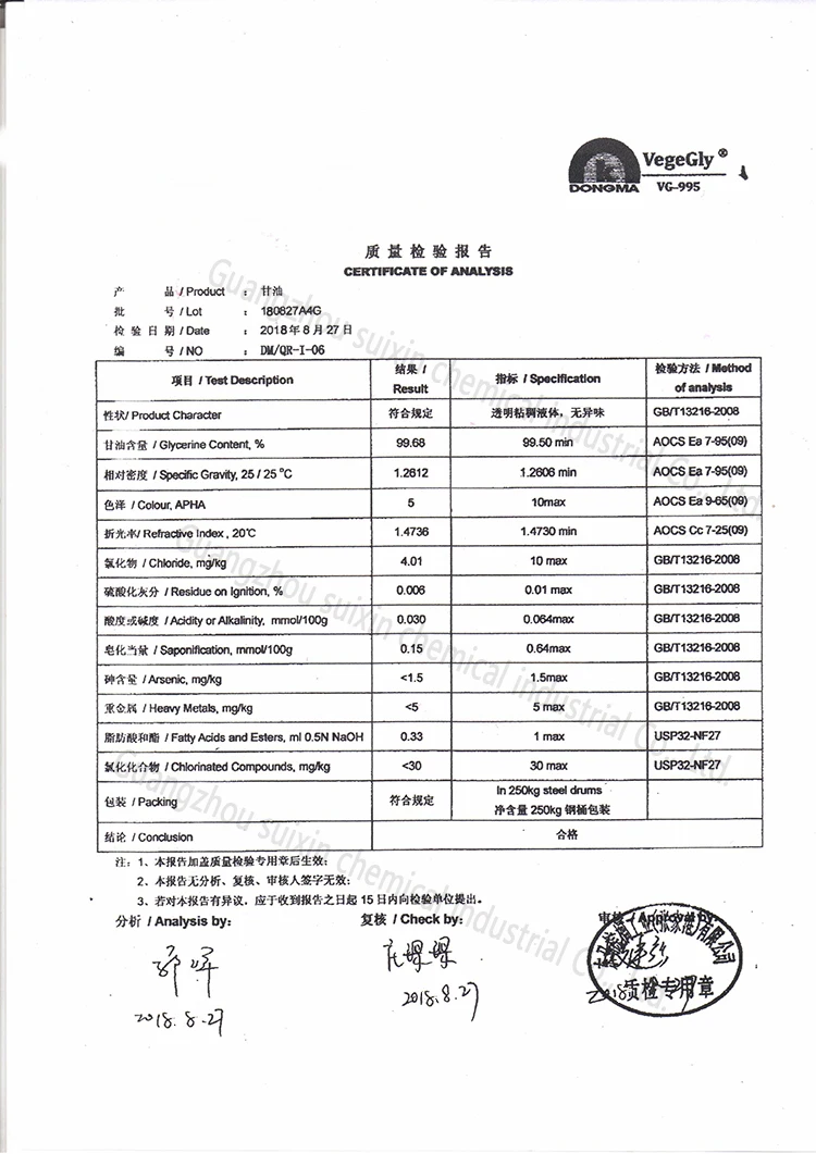 Глицерин - по сути, это разновидность спирта . Это бесцветная сладкая вязкая жидкость, которая получается как побочный продукт при производстве мыла . По своей природе вещество натуральное, оно бывает как растительного, так и животного происхождения . Его следует хранить в емкости из нержавеющей стали или алюминиевой посуде под азотной подушкой .