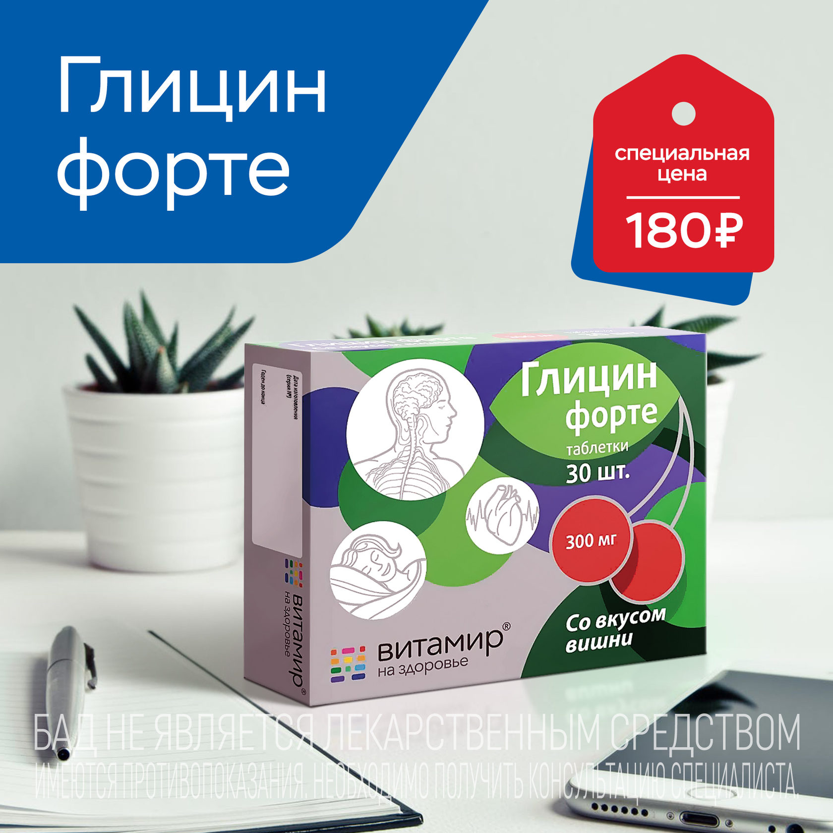 Витамир глицин форте таблетки 300 мг 30 шт купить в Чехове . . .
