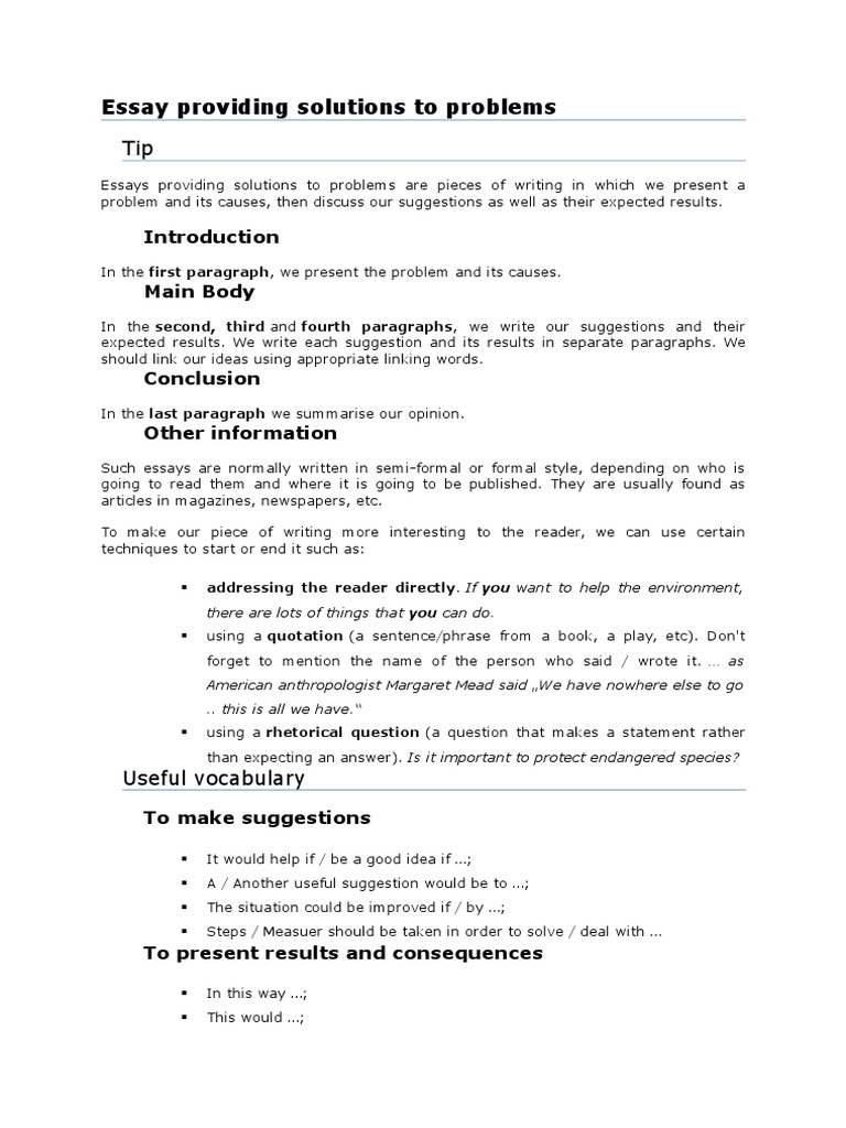 IELTS Writing Task 2 : Problem Solution Essay . . .