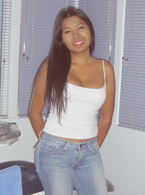 Young slender brunette babe Gloria with natural boobies and pretty face...