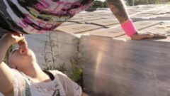 Nastolatek dostaje stopy czczony i zjedzony. Fetysz stóp nastolatek dostaje footworshipped i zjedzone na zewnątrz podczas masturbacji