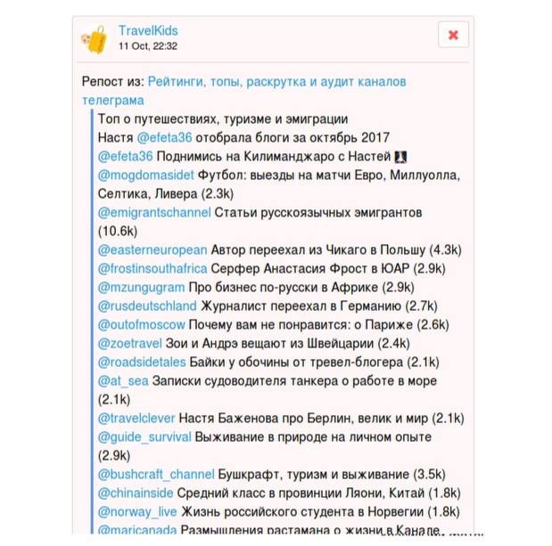 Подборка – список из 3-8 каналов по схожей тематике