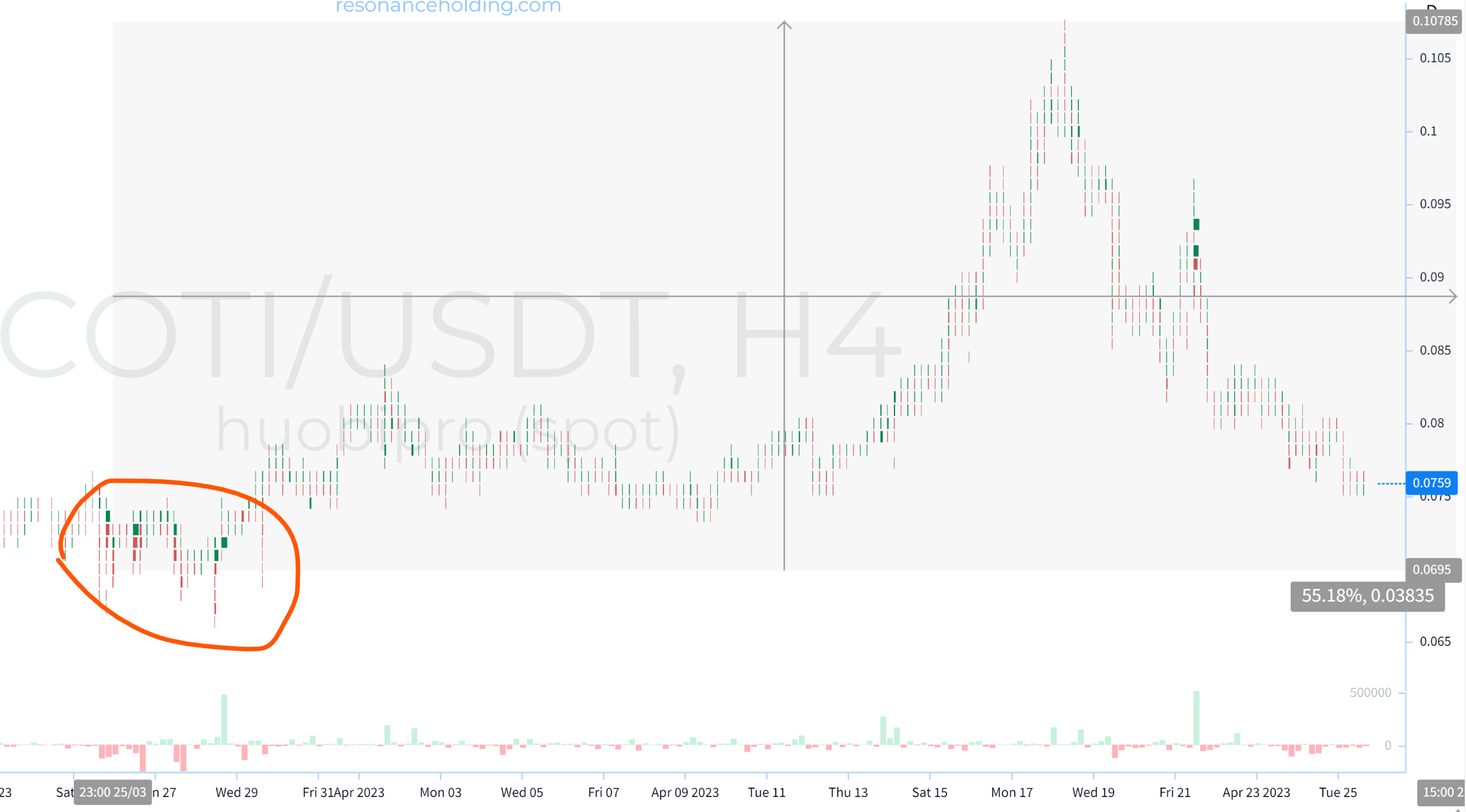 Выше скриншот такого ртт графика. У него много режимов и отслеживать можно много вещей. На скриншоте показана, как их называют в сообществе, "аномалия". Аномалия - это внезапный всплеск активности по объёмам. И эти аномалии довольно хорошо прячут. Делают равномерные закупы на разных биржах, за разные активы (за usdt, btc, eth, любые формы фиата(если доступно) и тд).