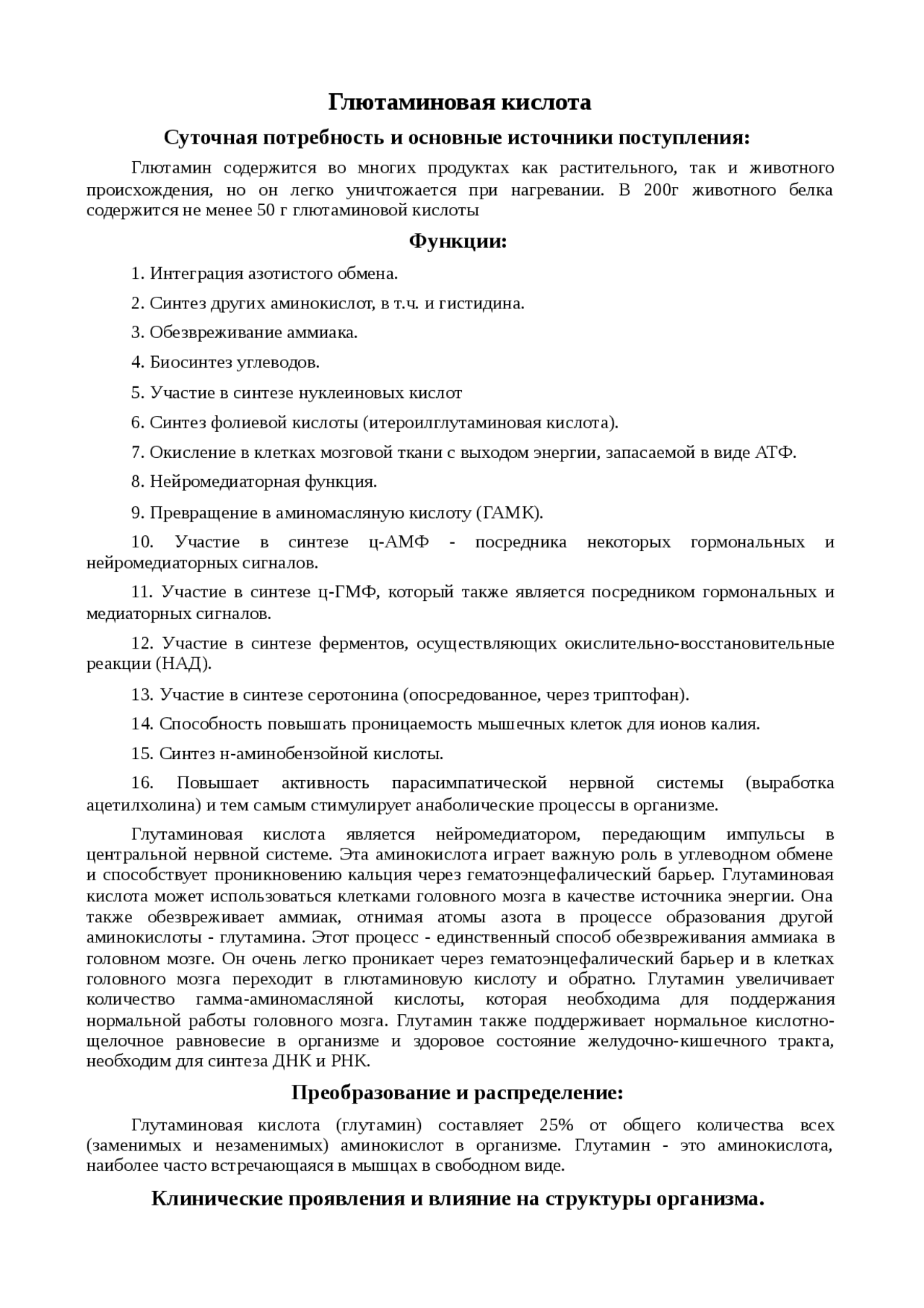 Глутаминовая кислота: инструкция по применению, показания . . .