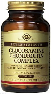 Для продукции протеинов требуется также и сера . А витамин С необходим, поскольку он тоже участвует в формировании и нормальном функционировании хрящей . Глюкозамин плюс (Glucosamin plus) содержит глюкозамин, хондроитин сульфат, органическую серу МSM и витамин С . Глюкозамин получен из ракообразных, а хондроитин - из свиного хряща .