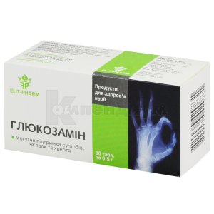 Таблетки Глюкозамин в полимерных флаконах по 50 шт . либо канвалютах по 10 шт . Состав 1 таблетка препарата Глюкозамин содержит глюкозамина гидрохлорид - 300мг . Дополнительно В комбинированной терапии Глюкозамин способен усиливать всасывание из ЖКТ препаратов тетрациклинового ряда и уменьшать - пенициллинов и хлорамфеникола . Основні параметри