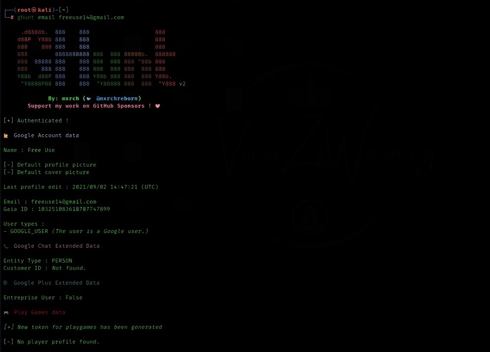 ghunt email example@gmail.com