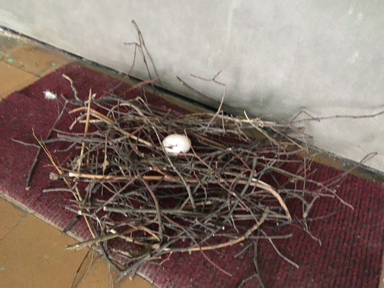 Обычно для голубей в помещении ставят высокую ветвистую корягу и предоставляют им необходимый для обустройства гнезда строительный материал .