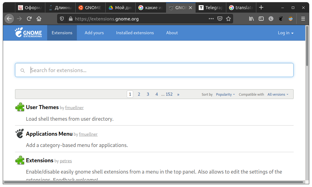 Pluginlar extensions.gnome.org dan o'rnatiladi